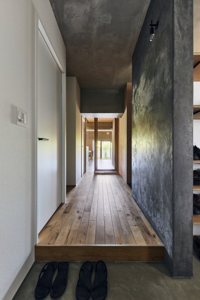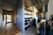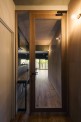 玄関から廊下を入ってすぐ右にある洗面室は寝室と繋がっており、寝室からは玄関土間に出ることができます。玄関土間の奥には、週に数回テレワークをするご主人のご希望でテレワークスぺースを設けました。