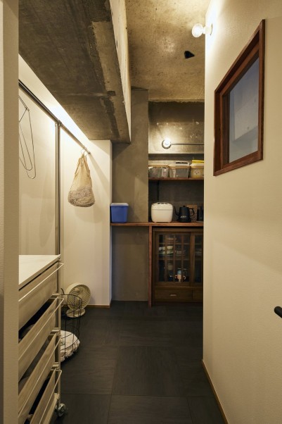 ご夫妻ともにコーヒーがお好きで、コーヒーカップや食器を集めておしゃれに置きたかったという奥様のご希望でパントリーも新設。パントリーはランドリールームと繋がっており、家事動線の良い間取りになっています。