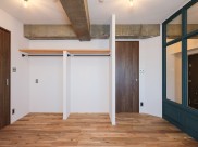 約9.4帖の洋室は、大きなベッドやデスクなどを置いてもゆとりがあります。ベッドやデスクからも、土間にディスプレイした趣味のコレクションを眺めることができ、楽しみが広がります。室内窓のガラスに飛散防止フィルムを貼り、洋室側にカーテンレールを設置し、安全性とプライバシーに配慮しています。 - 3オーダーリノベーションらしさを詰め込んだ空間