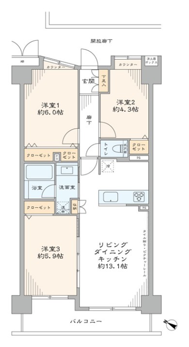 - 専有面積64m² 使い勝手の良い3LDK