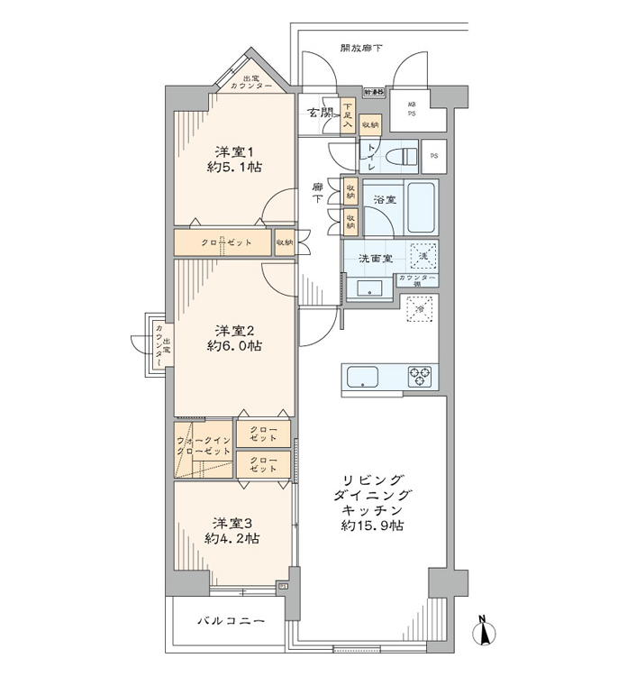 - 専有面積64.26㎡(壁芯)