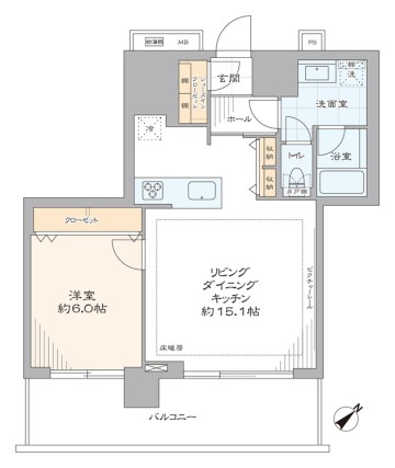 みなとみらい線『馬車道』駅徒歩7分 - 間取り : 1LDK +SIC