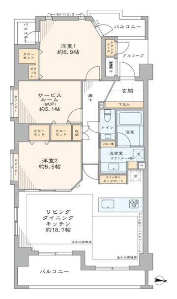 - バルコニー面積9.84 ㎡