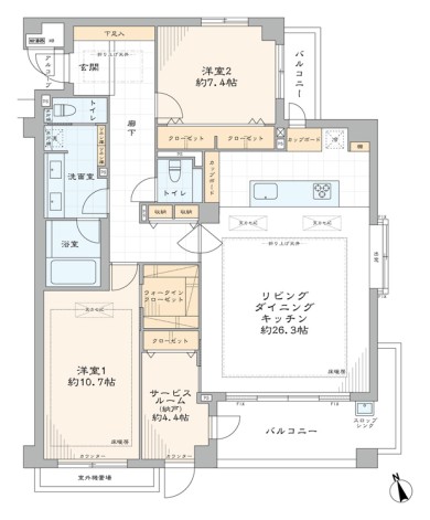 - バルコニー面積19.20 ㎡