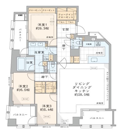 - バルコニー面積18.90 ㎡