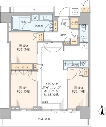 東京メトロ有楽町線・都営大江戸線『月島』駅徒歩14分 - 間取り : 3LDK+SIC・TR