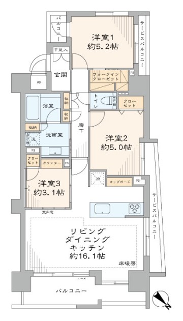 - 間取り3LDK+WIC