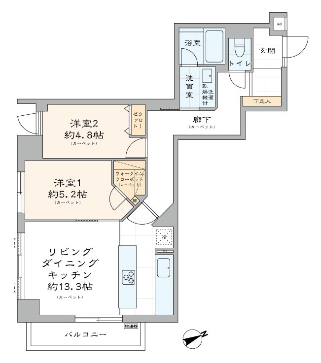 - 間取り2LDK+WIC
