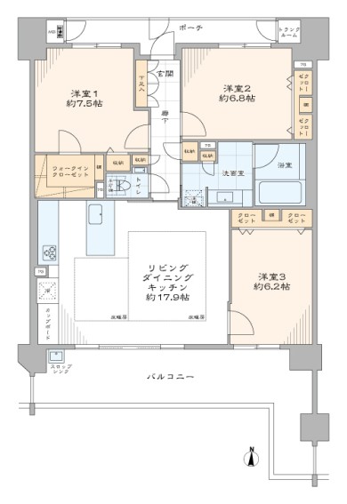 - 約17.9帖の広々LDK(LD床暖房あり)