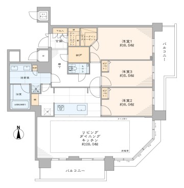- バルコニー面積19.50 ㎡