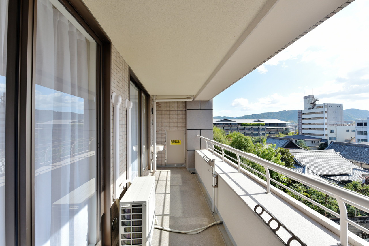 バルコニーから東山連峰を望む眺望あり