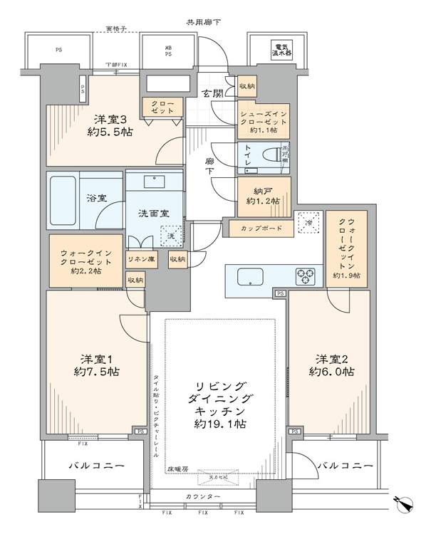 - 間取り : 3LDK+2WIC・SIC
